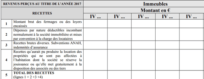 Le loyer et le revenu du SCI : case 1 à 5