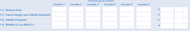 - Ligne 111 : montant de R1 (loyers bruts)