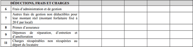 - Case 7 : Une déduction forfaitaire de 20 € par chambre louée est possible, pour couvrir les échanges avec le locataire (courrier, téléphone).