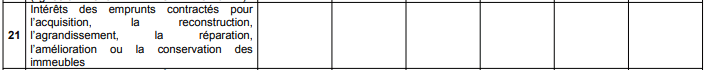 La ligne 21 est stratégique : tous les intérêts d’emprunt sont déductibles, mais pas seulement. Ajoutez également les frais bancaires, commissions de garantie, frais d’hypothèque, ou encore l’assurance emprunteur. Même si le bien n’est pas encore loué, ces charges peuvent créer un déficit foncier reportable.